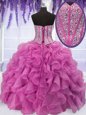 Four Piece Lilac Sleeveless Ruffles and Sequins Floor Length Sweet 16 Dress