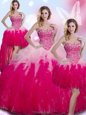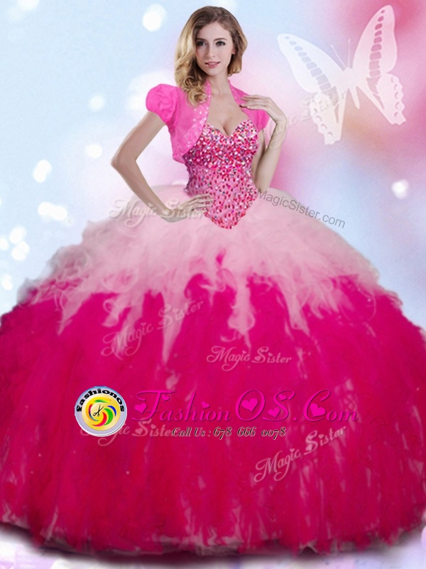 Four Piece Multi-color 15 Quinceanera Dress Military Ball and Sweet 16 and Quinceanera and For with Beading and Ruffles Sweetheart Sleeveless Lace Up