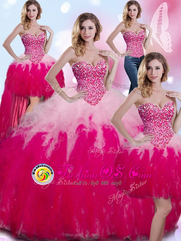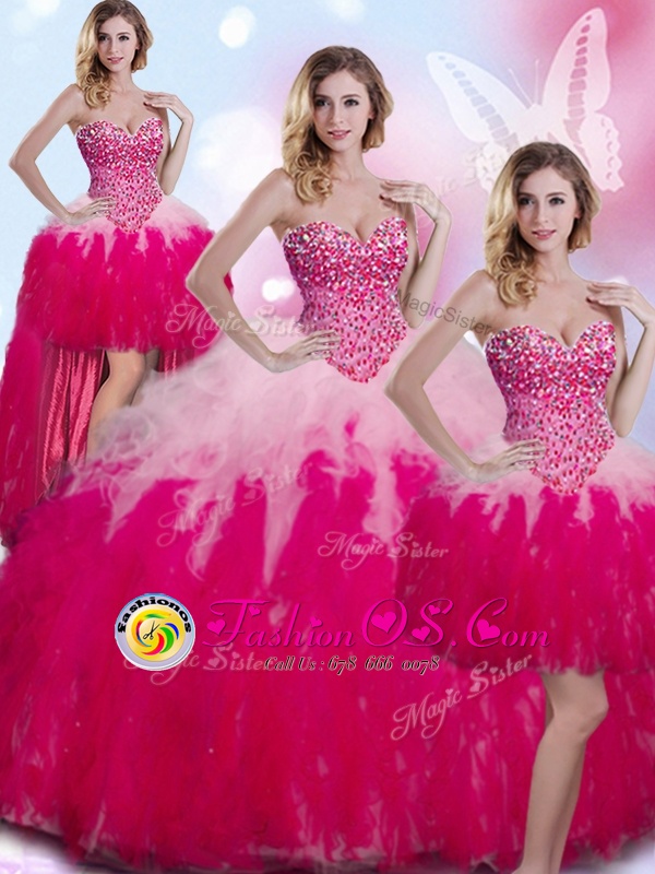 Home >  Quinceanera Dresses >  Detachable Quinceanera Skirts > Four Piece Multi-color 15 Quinceanera Dress Military Ball and Sweet 16 and Quinceanera and For with Beading and Ruffles Sweetheart Sleeveless Lace Up