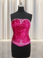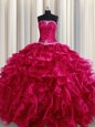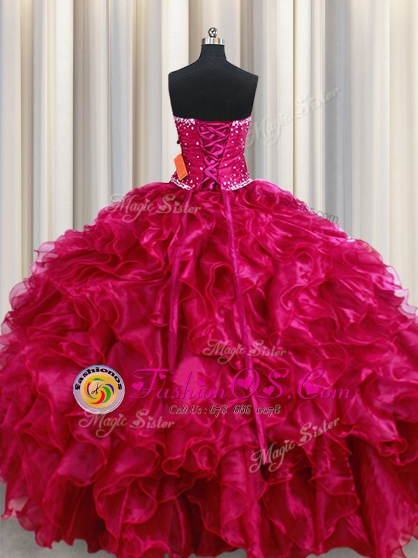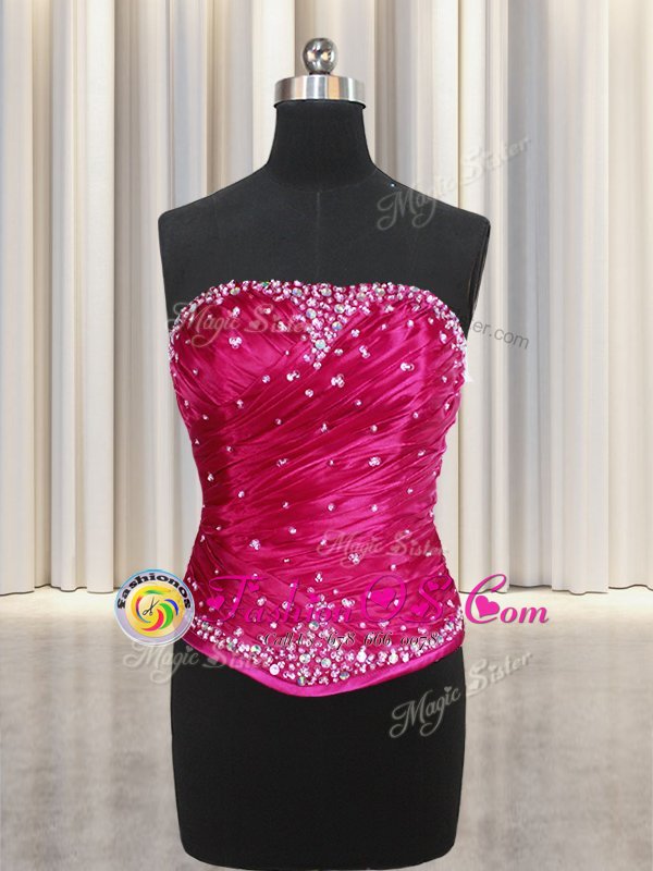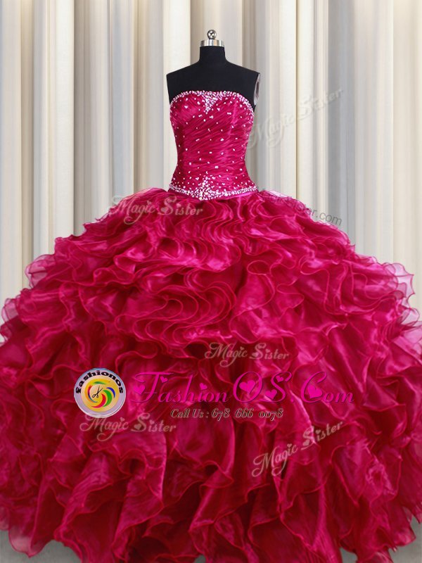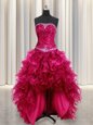 Four Piece Organza Strapless Sleeveless Lace Up Beading and Ruffles Quinceanera Gown in Burgundy