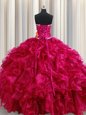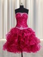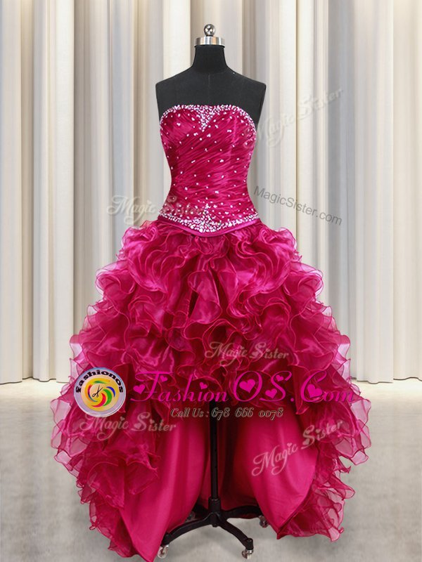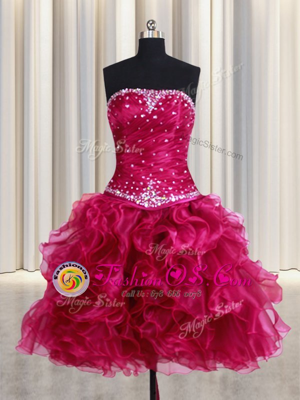 Home >  Quinceanera Dresses >  Detachable Quinceanera Skirts > Four Piece Organza Strapless Sleeveless Lace Up Beading and Ruffles Quinceanera Gown in Burgundy