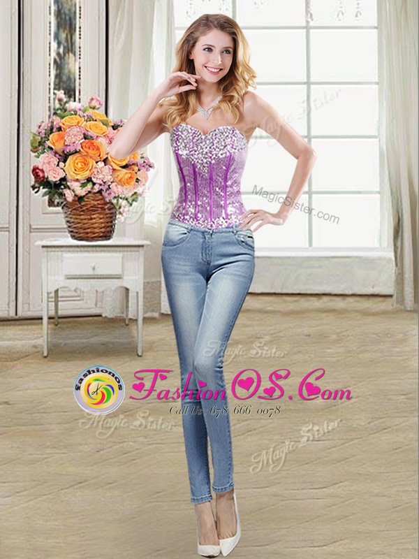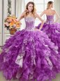 Home >  Quinceanera Dresses >  Detachable Quinceanera Skirts > Four Piece Purple Organza Lace Up Sweetheart Sleeveless Floor Length Sweet 16 Dress Beading and Ruffles and Sequins