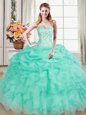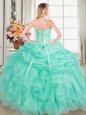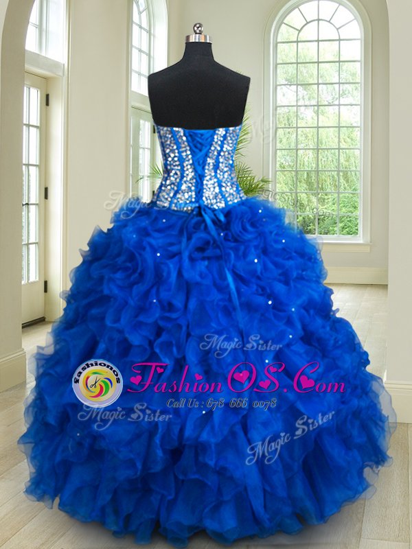 Four Piece Royal Blue Ball Gowns Beading and Ruffles Quinceanera Gowns Lace Up Organza Sleeveless Floor Length