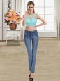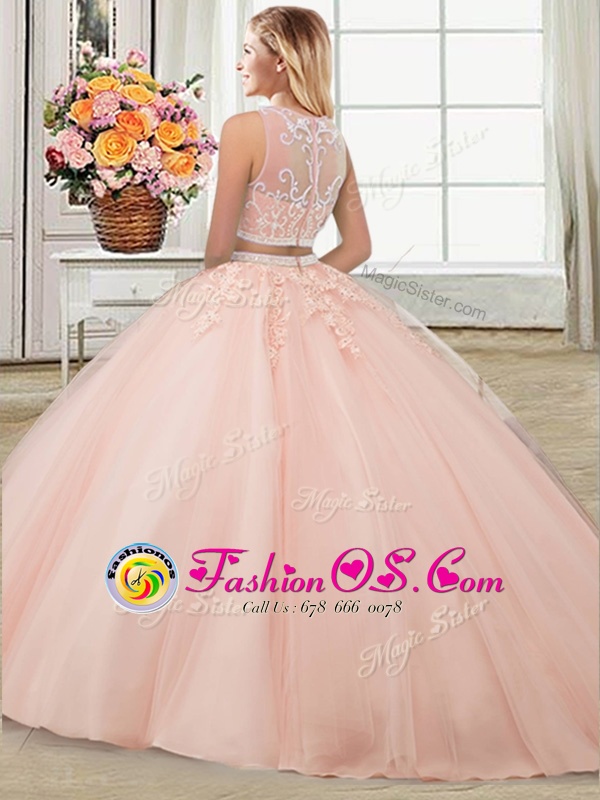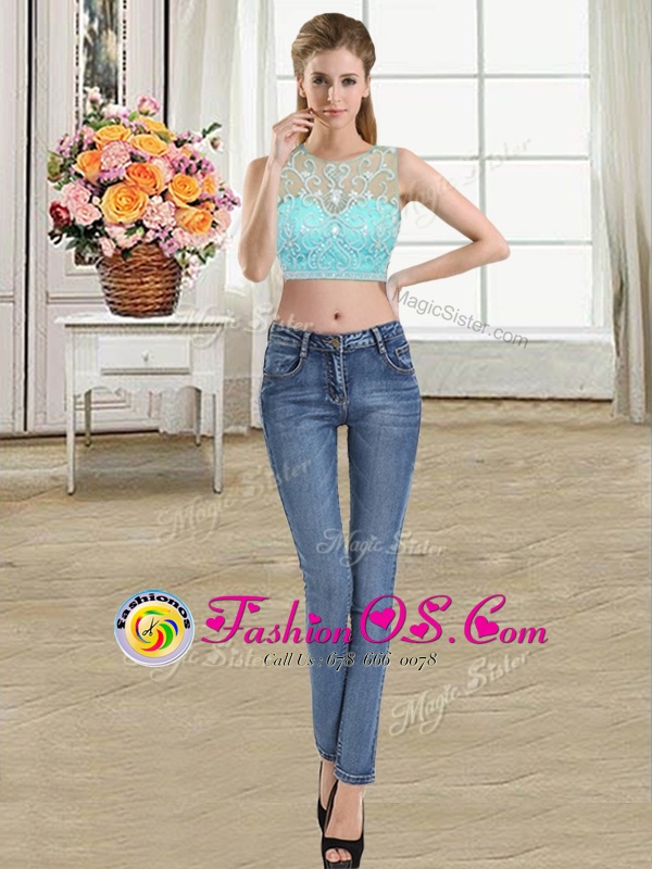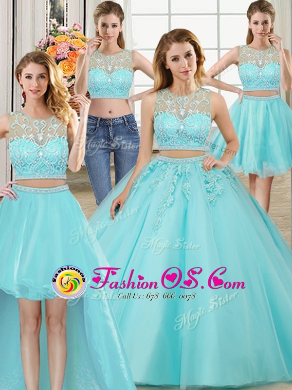 Four Piece Scoop Floor Length Ball Gowns Sleeveless Aqua Blue Quinceanera Gown Zipper