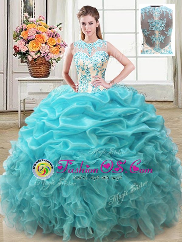 Home >  Quinceanera Dresses >  Detachable Quinceanera Skirts > Four Piece Scoop Sleeveless Organza Sweet 16 Dresses Beading and Ruffles Lace Up