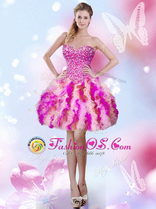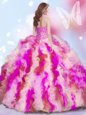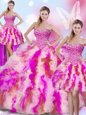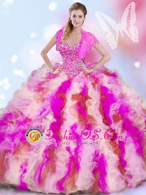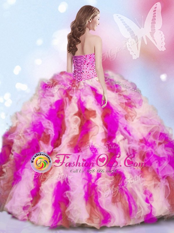 Four Piece Sleeveless Lace Up Floor Length Beading and Ruffles Ball Gown Prom Dress