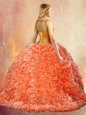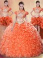 Home >  Quinceanera Dresses >  Detachable Quinceanera Skirts > Four Piece Straps Sleeveless With Train Beading and Ruffles Lace Up Ball Gown Prom Dress with Orange Red Brush Train