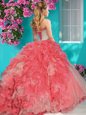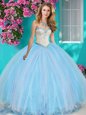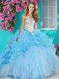 Four Piece Sweetheart Sleeveless Sweet 16 Dresses With Brush Train Beading and Ruffles Baby Blue Organza
