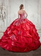 Free and Easy 2015 Red Quinceanera Dresses with Pick ups and Appliques