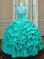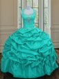 Home >  Quinceanera Dresses >  Luxurious Quinceanera Dresses > Free and Easy Aqua Blue Lace Up Straps Beading and Pick Ups Ball Gown Prom Dress Taffeta Sleeveless