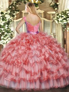 Home >  Quinceanera Dresses >  Sweet 16 Dresses > Free and Easy Ball Gowns Quinceanera Dress Watermelon Red V-neck Organza Sleeveless Floor Length Zipper
