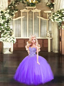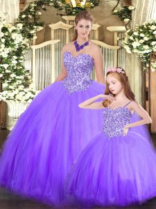 Free and Easy Eggplant Purple Ball Gowns Sweetheart Sleeveless Tulle Floor Length Lace Up Beading Quinceanera Gown