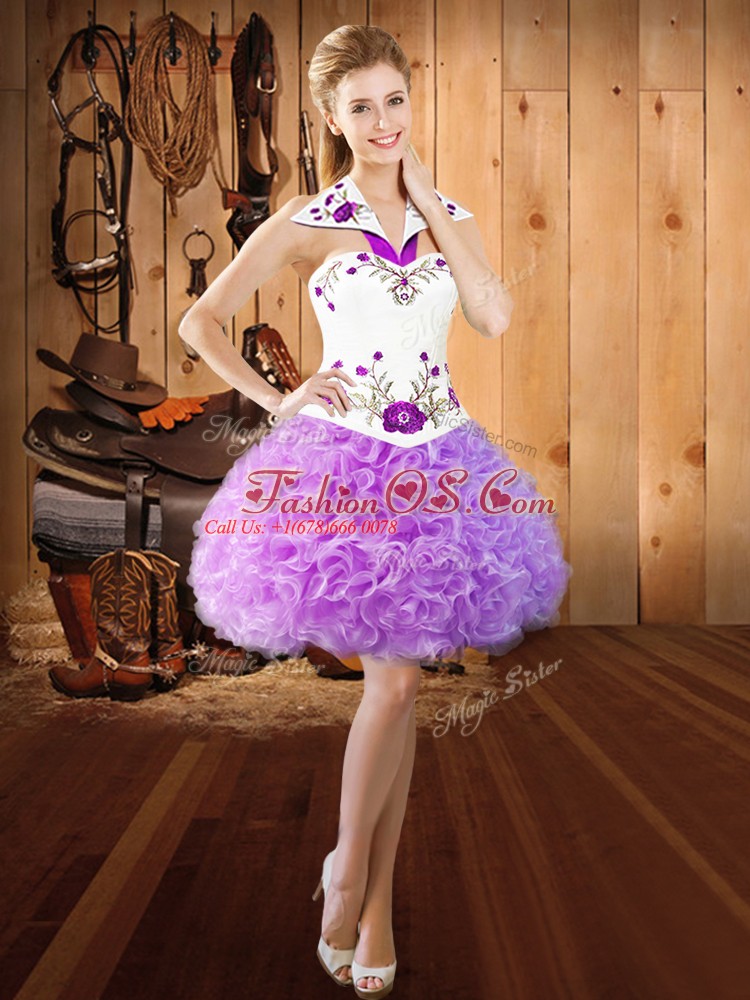 Free and Easy Floor Length Lace Up Quinceanera Dresses Lilac for Military Ball and Sweet 16 and Quinceanera with Embroidery