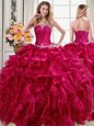 Home >  Quinceanera Dresses >  Luxurious Quinceanera Dresses > Free and Easy Four Piece Strapless Sleeveless Sweet 16 Dresses Floor Length Beading and Ruffles Fuchsia Organza