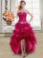 Free and Easy Four Piece Strapless Sleeveless Sweet 16 Dresses Floor Length Beading and Ruffles Fuchsia Organza