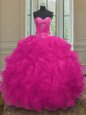 Free and Easy Fuchsia Ball Gowns Beading and Embroidery Quinceanera Dresses Lace Up Organza Sleeveless Floor Length