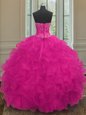 Home >  Quinceanera Dresses >  In Stock Quinceanera Dresses > Free and Easy Fuchsia Ball Gowns Beading and Embroidery Quinceanera Dresses Lace Up Organza Sleeveless Floor Length
