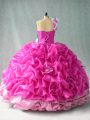 Free and Easy Fuchsia Quinceanera Dress Sweet 16 and Quinceanera with Pick Ups and Hand Made Flower One Shoulder Sleeveless Lace Up