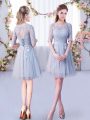 Free and Easy Grey Empire Tulle Scoop Half Sleeves Lace Mini Length Lace Up Wedding Party Dress