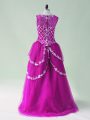Free and Easy High Low Fuchsia Prom Dresses Scoop Sleeveless Zipper