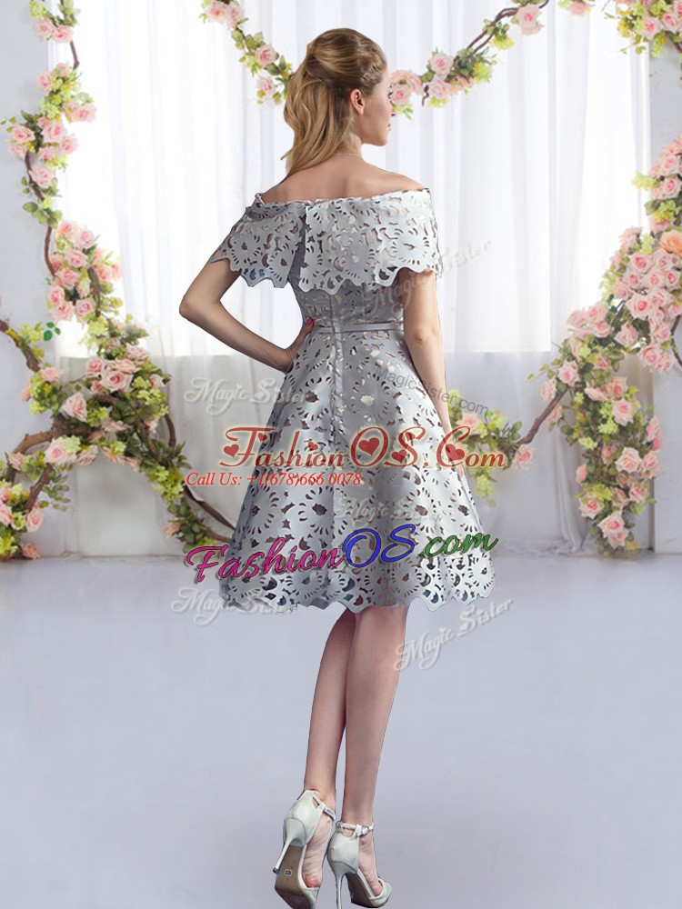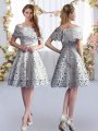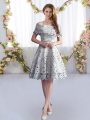 Free and Easy Knee Length Zipper Damas Dress Grey for Prom and Party and Wedding Party with Lace