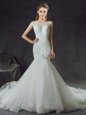 Home >  Wedding Dresses >  Elegant Wedding Dresses > Free and Easy Mermaid Scoop Tulle Sleeveless With Train Bridal Gown Court Train and Lace and Appliques