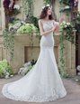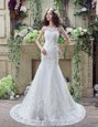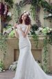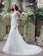 Free and Easy Mermaid See Through Scoop Sleeveless Lace Wedding Gowns Beading and Appliques Brush Train Backless