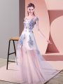 Free and Easy Pink Cap Sleeves Tulle Lace Up Dress for Prom for Prom and Party