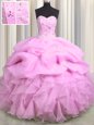 Free and Easy Scalloped Lavender Organza Lace Up Ball Gown Prom Dress Sleeveless Floor Length Beading and Ruffles