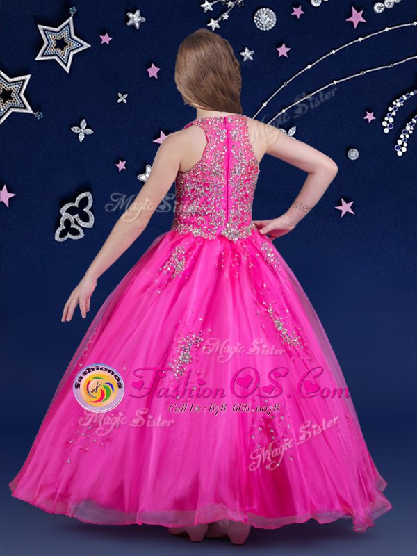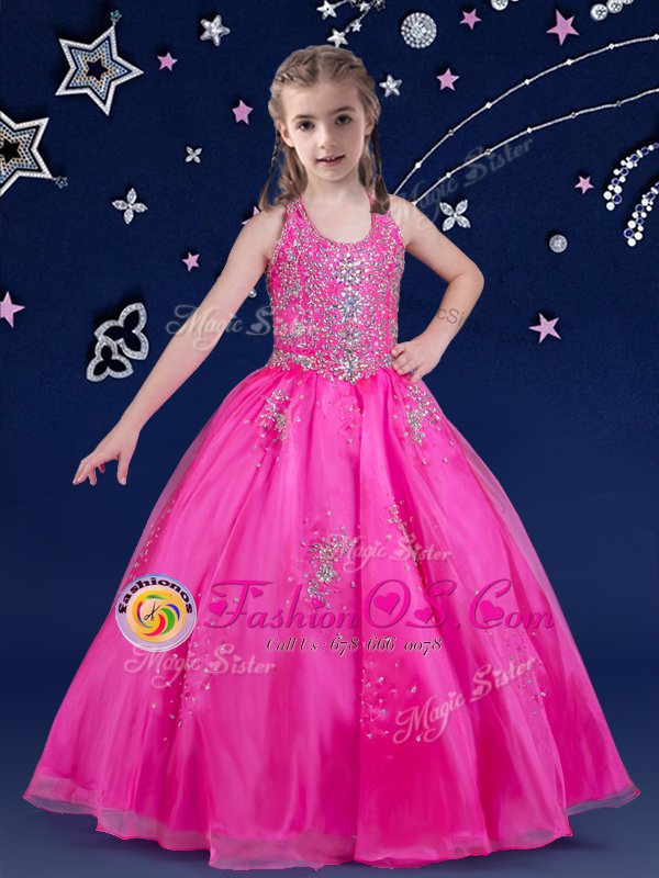 Home >  Special Occasion Dresses >  New Style Little Girl Pageant Dresses > Free and Easy Scoop Fuchsia Sleeveless Organza Zipper Pageant Gowns For Girls for Quinceanera and Wedding Party