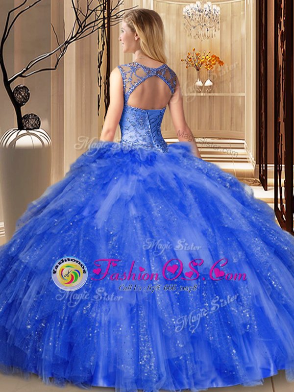Home >  Quinceanera Dresses >  In Stock Quinceanera Dresses > Free and Easy Scoop Sleeveless Lace Up Floor Length Ruffles Quinceanera Gowns