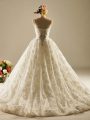 Free and Easy Sleeveless Beading and Lace Lace Up Bridal Gown with White Brush Train