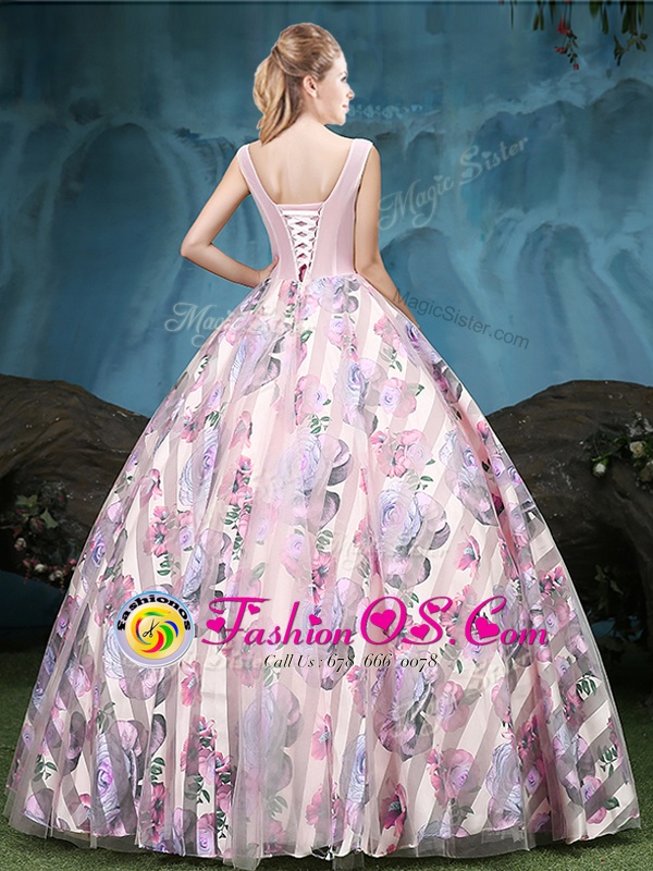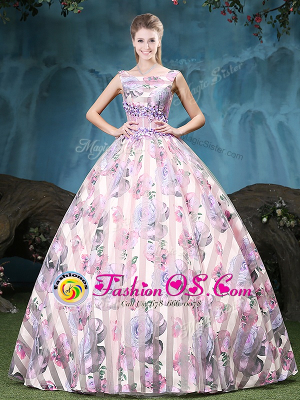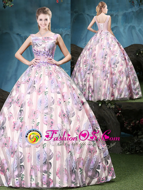 Free and Easy Straps Sleeveless Appliques and Pattern Lace Up 15th Birthday Dress