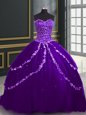 Home >  Quinceanera Dresses >  Perfect Quinceanera Dresses > Free and Easy Sweetheart Sleeveless Sweet 16 Dress With Brush Train Beading and Appliques Purple Tulle