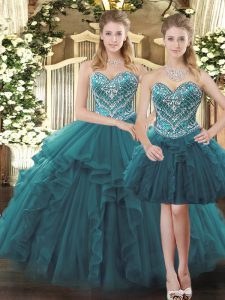 Free and Easy Teal 15 Quinceanera Dress Military Ball and Sweet 16 and Quinceanera with Beading and Ruffles Sweetheart Sleeveless Lace Up