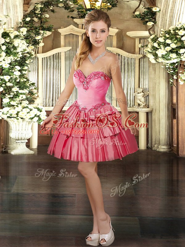 Home >  Quinceanera Dresses >  Detachable Quinceanera Skirts > Free and Easy Watermelon Red Organza Lace Up 15 Quinceanera Dress Sleeveless Floor Length Beading and Ruffled Layers