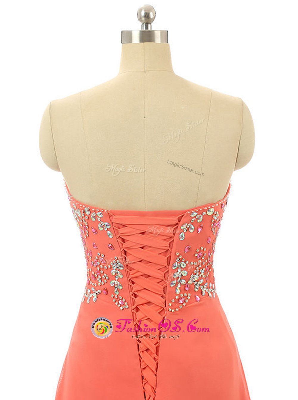 Home >  Prom Dresses >  Fashionable Prom Dresses > Free and Easy Watermelon Red Sweetheart Neckline Beading Prom Dress Sleeveless Lace Up