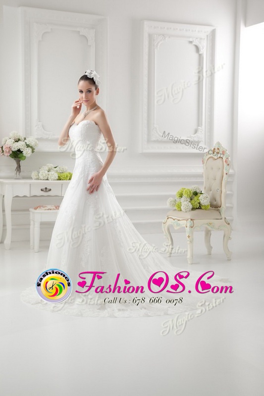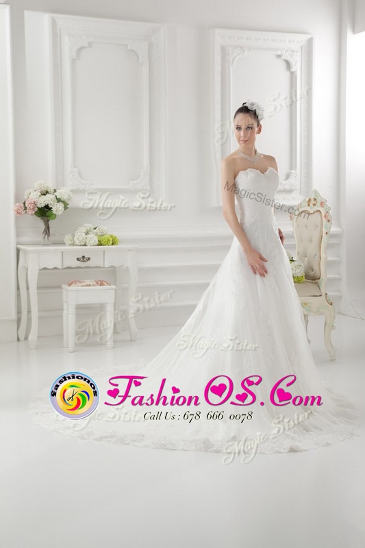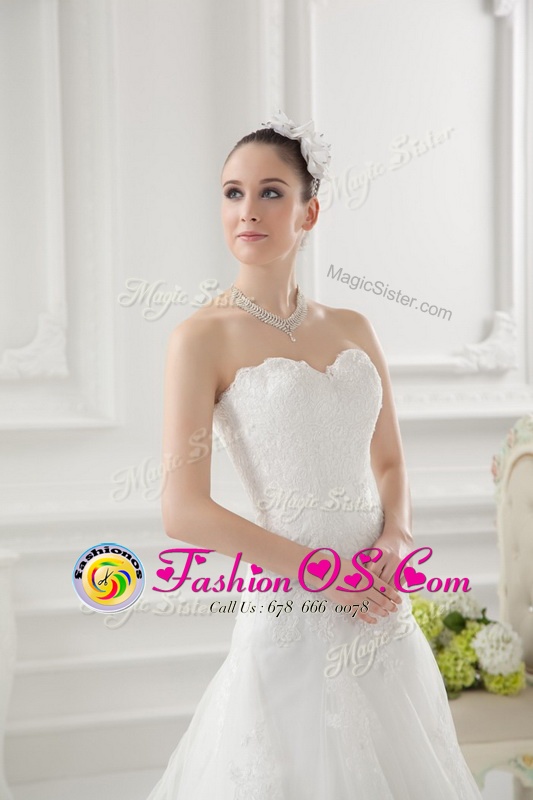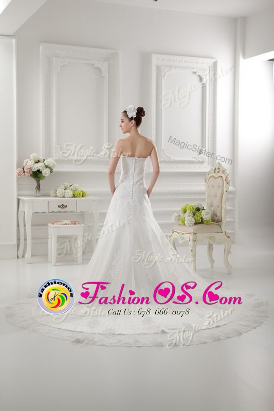 Free and Easy White Clasp Handle Wedding Gown Lace and Appliques Sleeveless Sweep Train