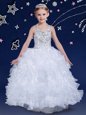 Home >  Special Occasion Dresses >  Little Girl Pageant Dresses > Free and Easy White Lace Up Halter Top Beading and Ruffles Child Pageant Dress Organza Sleeveless