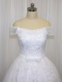 Free and Easy White Sleeveless Court Train Beading and Lace and Belt Wedding Gowns