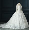 Home >  Wedding Dresses >  Wedding Dresses 2019 > Free and Easy White Wedding Gown Lace Brush Train Long Sleeves Beading and Lace