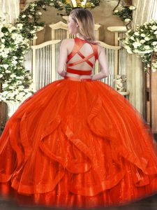 Free and Easy Yellow Green Criss Cross High-neck Ruffles Quince Ball Gowns Tulle Sleeveless
