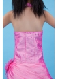 Fuchsia A-line Halter Flower Girl Dress Organza and Taffeta Beading Floor-length