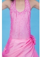 Home >  Flower Girl Dresses > Fuchsia A-line Halter Flower Girl Dress Organza and Taffeta Beading Floor-length