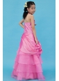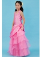 If your little darling is in the pageant circuit, you know the importance of beautiful dresses.Having a competition dress that is both appealing to the judges and complimentary to your daughter goes along way in helping her secure the crown.This one features a heavily beaded halter-style bodice with floral embellishment in the bust area.Sequins and crystals feature the fitted bodice. The A-line skirt has several overlays of tulle, adding interest and detail. This darling gown will make your daughter look like the princess she is.