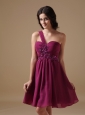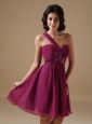 Fuchsia  A-line One Shoulder Mini-length Chiffon Beading Cocktail Dress