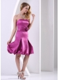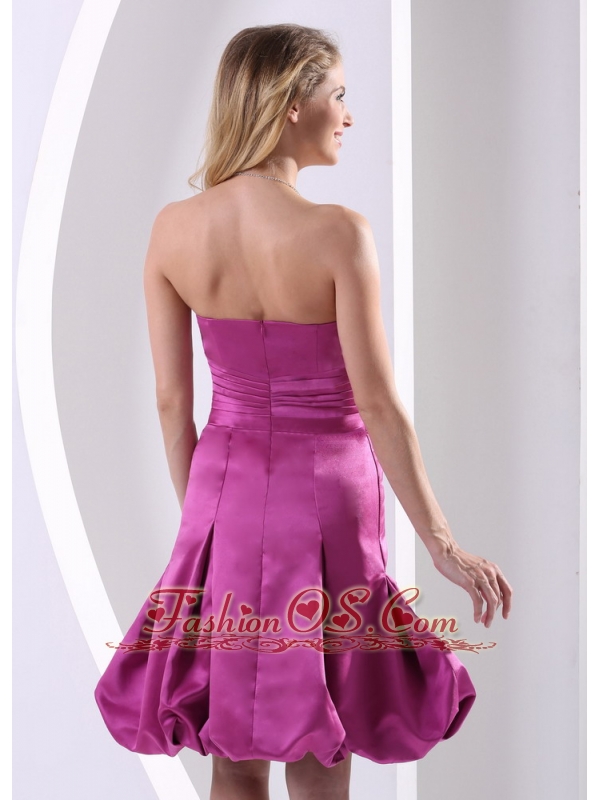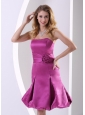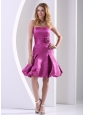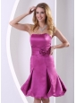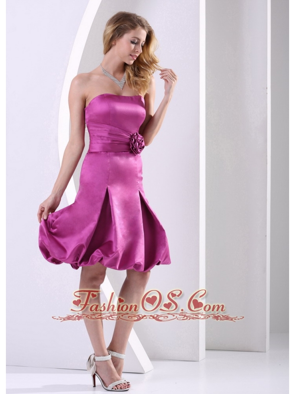 Fuchsia A-line Strapless Bridesmaid Dress With Satin Ruch and Hand Made Flowers