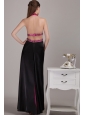 Fuchsia and Black Empire Halter Ankle-length Elastic Woven Satin Beading Prom Dress