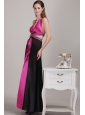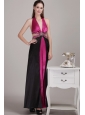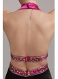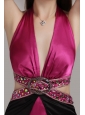Home >  Prom Dresses >  Cheap Prom Dresses > Fuchsia and Black Empire Halter Ankle-length Elastic Woven Satin Beading Prom Dress
