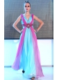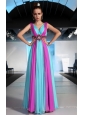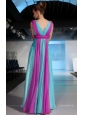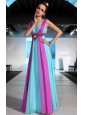 Home >  Prom Dresses >  Discount Prom Dresses > Fuchsia and Blue Empire V-neck Floor-length Chiffon Beading and Ruch Prom / Celebrity Dress